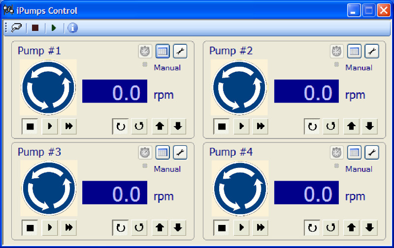Monitoring and control software is now standard for all modern laboratory equipment. Yet most manufacturers of peristaltic pumps still do not supply PC pump software to run their peristaltic pumps. iPumps Peristaltic Pump Management Software is designed to be easy and logical to use. It has a built in simulator programme that enables you to demonstrate and practice with our pump management software without actually connecting to your peristaltic pump.